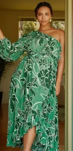 NWT Farm Rio X Anthropologie one shoulder green dress size M Size M - $90 New With Tags - From Elizabeth