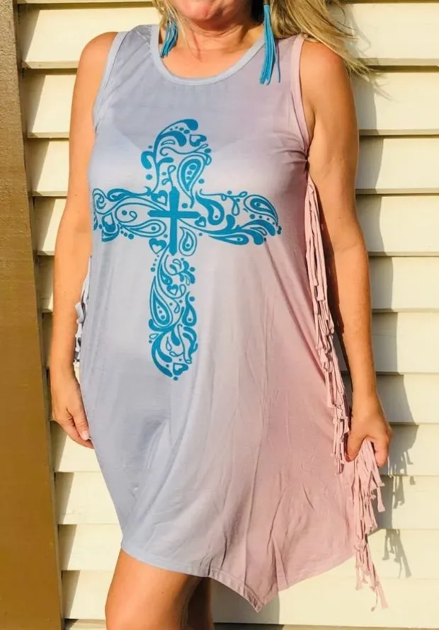 NWT Fashion Express Super cute ombré gray/blush fringe dress PTP: 20” Stylish sleeveless fringe dre... Show more