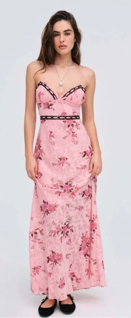 NWT Embrace your romantic side with the Guinevere pink maxi dress, featured in a charming floral pr... Show more
