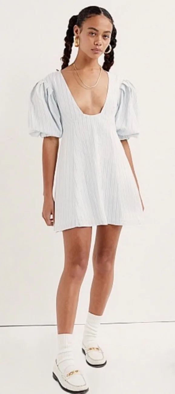 Leslie is a picnic-ready mini dress featuring thin shimmering lurex stripes, roomy A-line skirt and... Show more