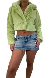 NWT Forever 21 Lime Faux Fur crop y2k colorful glamorous street wear 90s fuzzy shearling half bright... Show more