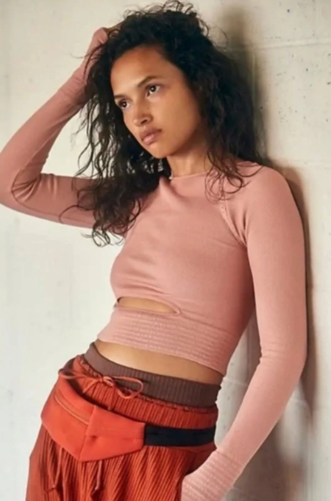 Tags: feminine edge, soft activewear, yoga streetwear, stretchy comfort, rose glow, laidback chic, cozy movement, body contour, dance inspired, mindful style, studio staple, thumbhole detail, girly grunge, active layering, balletcore