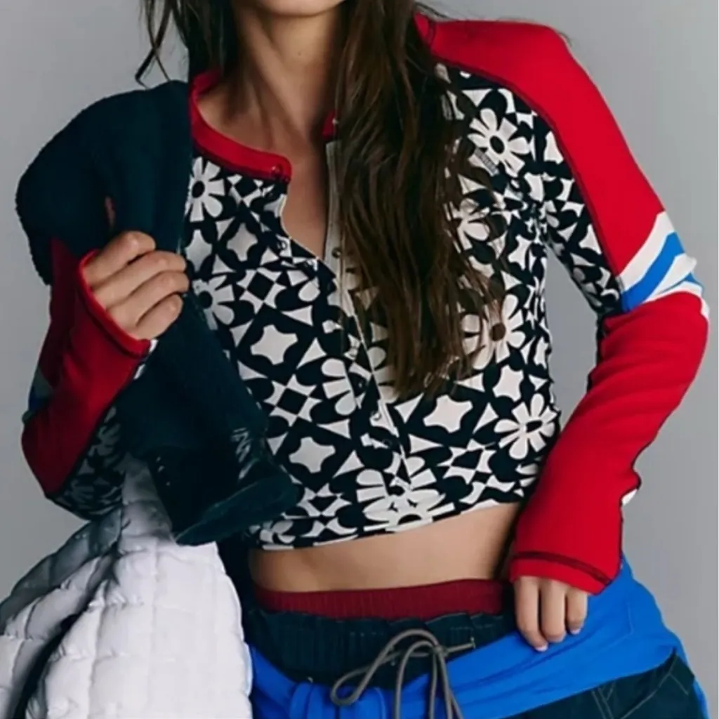NWT FREE PEOPLE FP Movement Women's Kick Off Printed Layer Top in Aspen Onyx Red Size XS - $56 New With Tags - From Kailey