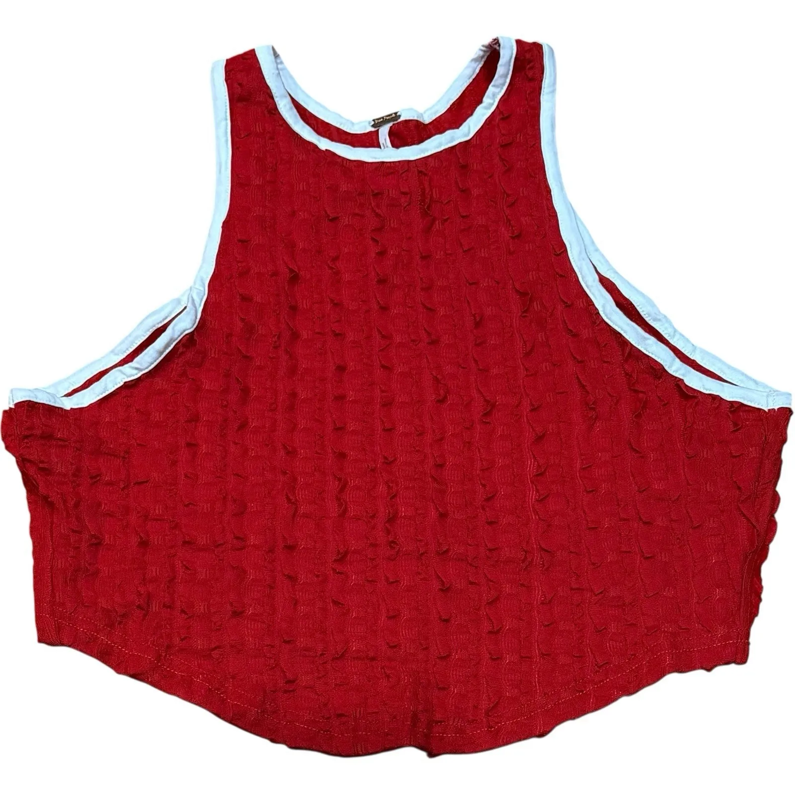NWT Free People Maci Textured Red White Open Back Lace Up Festival Tank Top XS New with tags! Meas... Show more