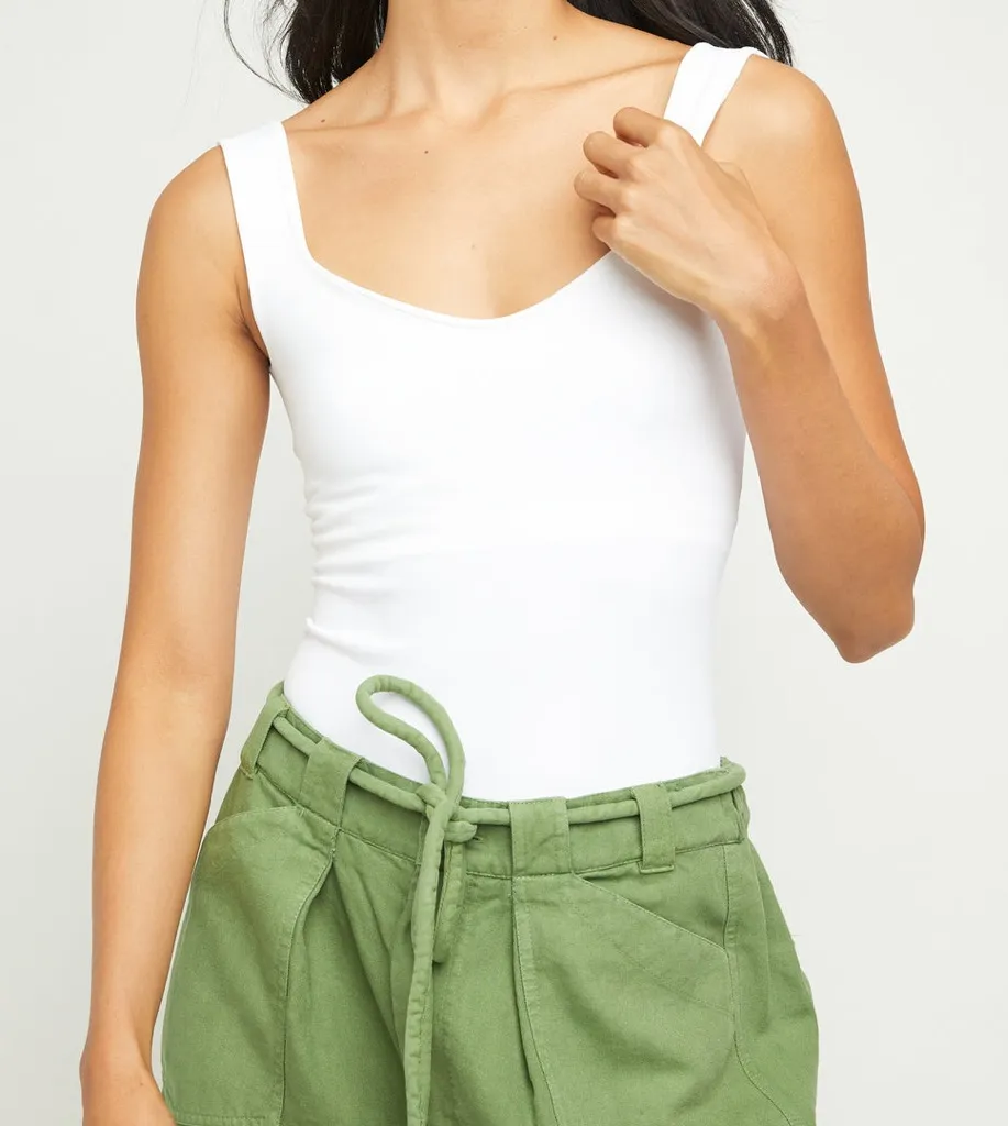 Free People Intimately white sleeveless scoop neck bodysuit with built-in shelf bra and snap closure... Show more