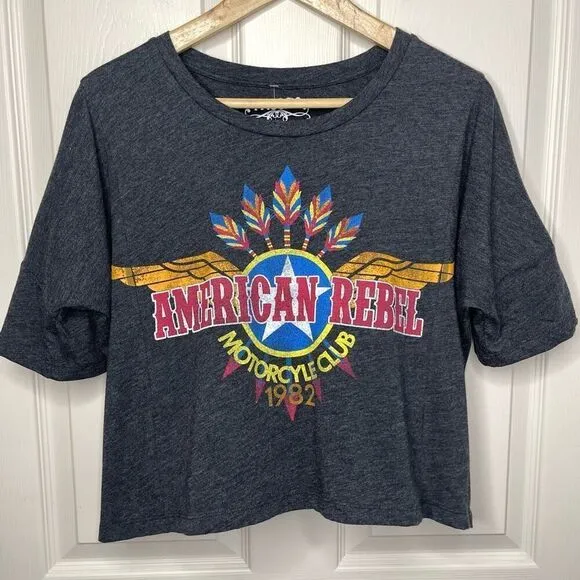 NWT Freeze American Rebel Graphic Tee (Heather Gray) - XS Boxy fit Oversized Graphic front Waist le... Show more