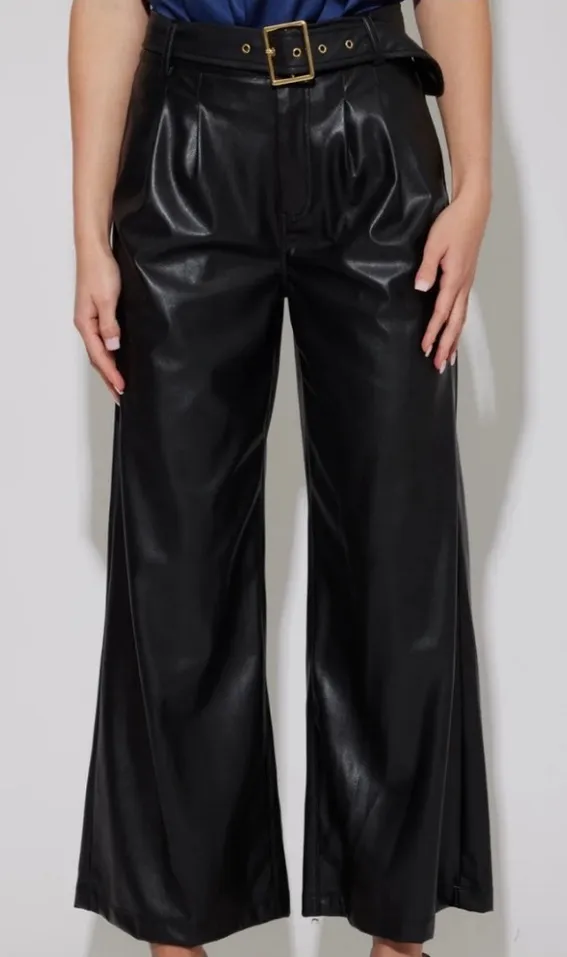 The Genesis trousers are a true trendsetter. Made with soft vegan leather and a wide leg silhouette, these belted beauties are perfect for dressing up with heels for dinner or down with your favorite sneakers for a streetwear-inspired look. *Belt included* • Face: 100% Polyurethane, Back: 100% Polyester • Hand wash, hang to dry or professional dry clean Size 8 Waist: 15.5” Inseam: 27” Leg flare 13.5” NWT $307