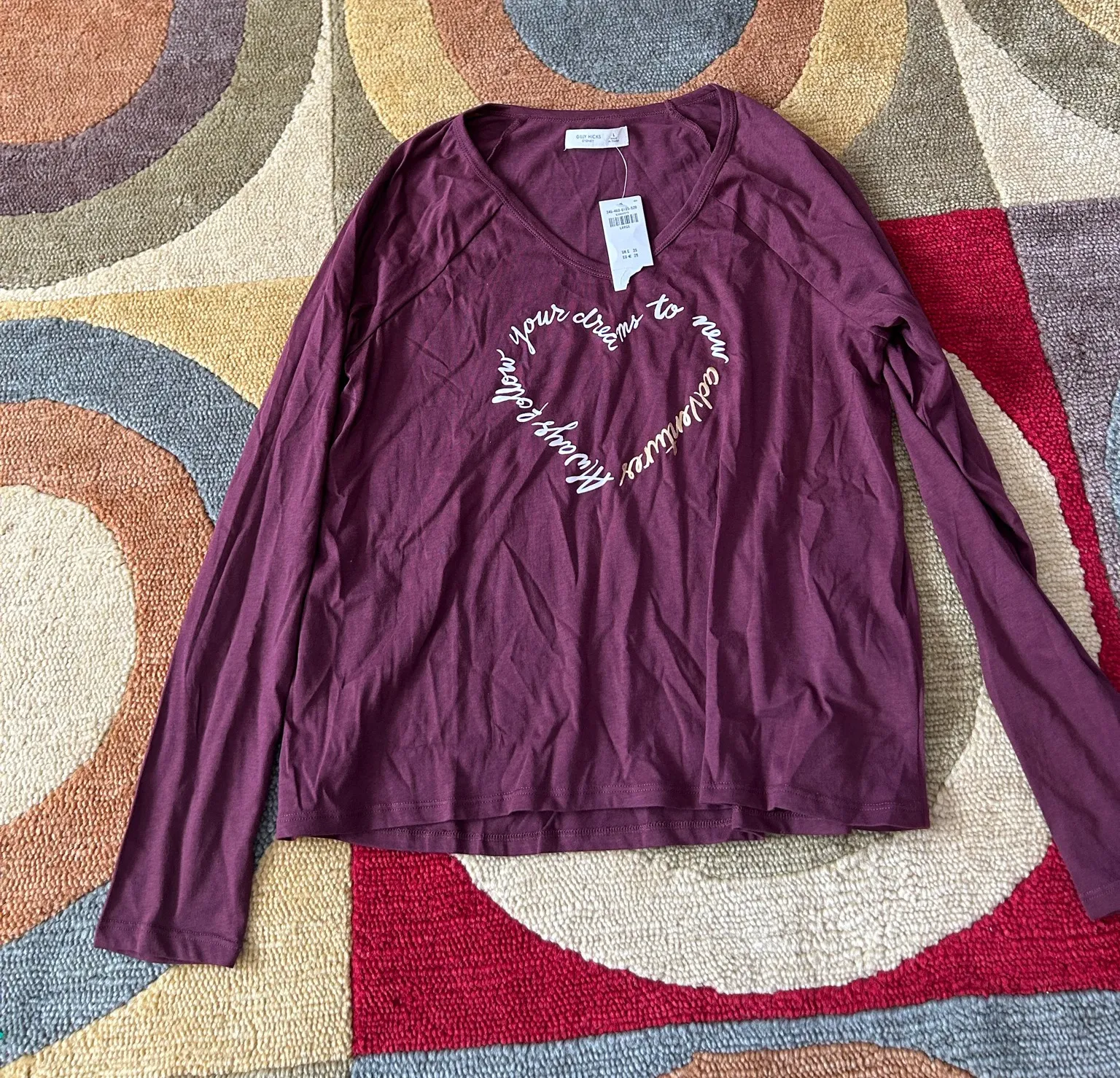 NWT Gilly Hicks Sydney Sleep Lounge Long Sleeve Top Graphic Tee Y2K Heart Maroon Women’s Large O... Show more