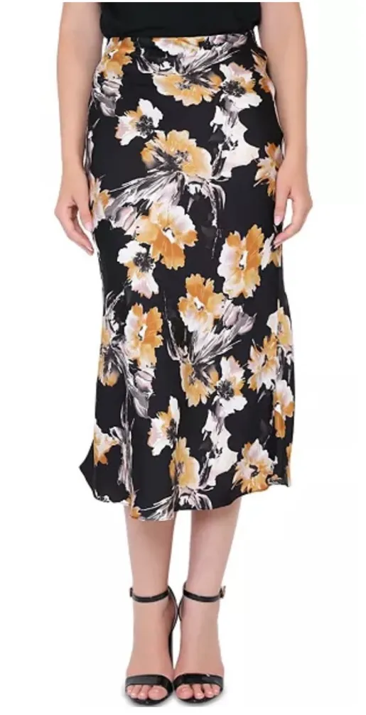 Note: this is a gift, brand new skirt never worn. The label says a L, but it runs small. It fits a size 8, also Would fit a 6. ~ non-stretch beautiful lightweight satin ~ hem edge flows ~ zippered side ~ interior flat elastic waistband ~ high Waist ~ excellent condition ~ close fitted though hips, then flares Size: fits a size 8, NOT a Large Length: 35.5” Waist: 30” Hips: 37” Garden Party Brunch Wedding guest Cocktail holiday thanksgiving evening day to night brunch career classic feminine work preppy chic mod elegant sophisticated