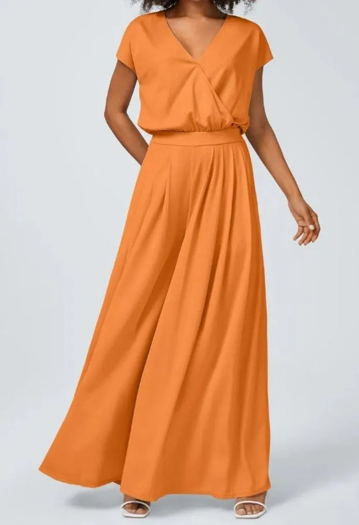 This is a NWT Halara V Neck Short Sleeve Side Pocket Wide Leg Flowy Waffle Casual Jumpsuit Sunshine Orange S. In excellent condition. Brand new with tags attached. See all pics for condition. 100% polyester Bust- 18" Waist- 13.25" Length- 59" Inseam- 27" B6 Neutral Minimalist Contemporary Black Essentials Business Casual Casual Classic Workwear Oversized Knit Back to School Fall Fashion Spring Summer Vacation Trendy Winter