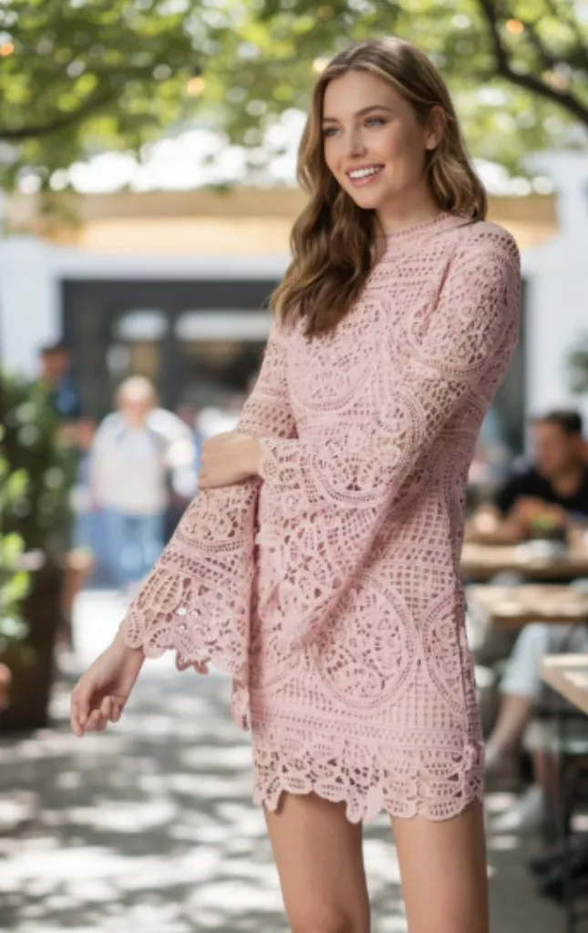 Sweet powdery-pink hues and intricate details are just some of the signature design details at the top of our wishlist for SS18. And this embroidered mini dress ticks all the right boxes. It keeps to all of the style rules with a leg-baring hemline that’s balanced with long flared sleeves and a high neckline. Toughen its prim-and-proper feel by styling up with black ankle boots. DETAILS * SCOOP NECKLINE, BELL SLEEVES, HIDDEN BACK ZIPPER CLOSURE * POLY/COTTON BLEND * BY HAUTE ROGUE