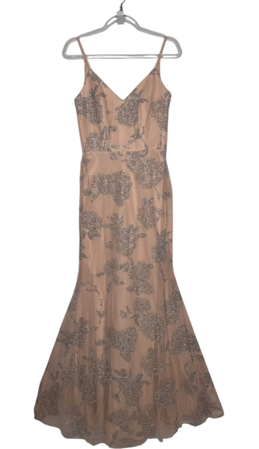 NWT Hayley Paige Occasions Blush Floral Glitter Tulle Gown 2010s Size 2 New with tags Hayley Paige Occasions formal gown in a soft blush nude tone with silver glitter floral overlay. Elegant V-neckline with delicate spaghetti straps, fitted bodice, defined waist seam, and a flowing mermaid silhouette. Fully lined with sheer tulle overlay for a romantic, ethereal look. Perfect for bridesmaids, formal events, galas, or special occasions. Never worn, original tags attached. Professionally dry clean only per care label. Hayley Paige Occasions bridesmaids dress - Almond caviar modified A-line bridesmaid gown, curved V-neckline, natural waist. Size 2 Color blush/almond/cashmere Style 5717 Caviar Curved v-neckline Spaghetti strap A-line Natural waist Fit and flare Long bridesmaid dress Fully lined Invisible center back zipper Shown in Almondu Measurements are approximate Length 64.5” Chest 34.5” Waist at band 28” In NEW with tags condition Five-star seller Same day shipping or next Bundle discount available blushgown formalgown eveningdress hayleypaige bridesmaiddress glittertulle floralgown mermaidgown specialoccasion weddingguestgown nwtgown size2gown