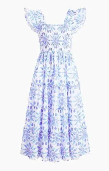 Up for purchase today is... Designer: Hill House Size: XXS Fit: Please do not go by size number but rather check measurements listed below to determine if the item will fit. Color: Blue Shell Mosaic Style/Design #: Ellie Nap Material: 100% cotton Details: * Meet the wear-everywhere Nap Dress®. It’s our signature garment; soft, comfortable, and pretty enough to wear all day and night. The Ellie is an A-line Nap Dress with elasticated smocking, ruffled shoulders, a tiered midi skirt and pockets! We worked with artist Leïla Dubus to create this breezy watercolor print, which features summer seashells in a tonal geometric print. If in between sizes, size down. Unlined. Machine wash. Imported. * Condition: New with tags Retail: $150 Measurements: Chest - 23" Waist - 21" Length - 44"