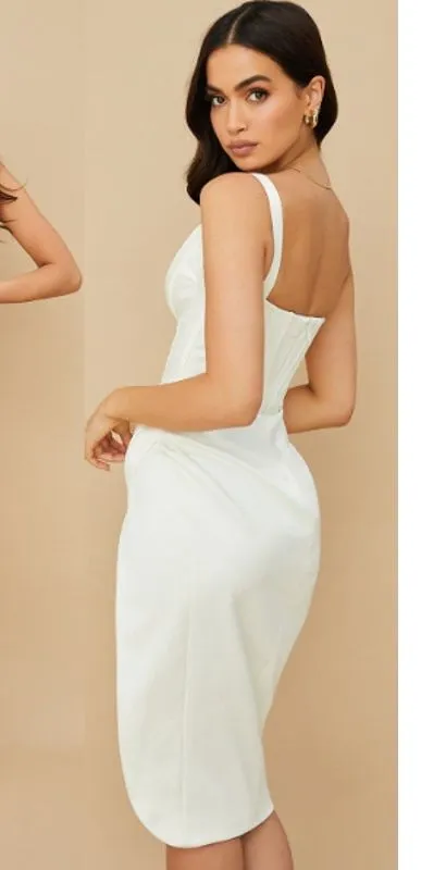 Turn heads in the ultra-glamorous Faye midi dress from House of CB. With its elegant midi length and signature hourglass fit, it’s the perfect choice for special occasions, evening events, or bridal celebrations.