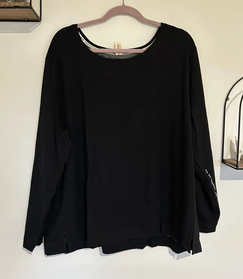 NWT Hue Black Long Sleeve Crewneck Shirt You Are Strong Plus Size Size 3X Measurements (approxima... Show more
