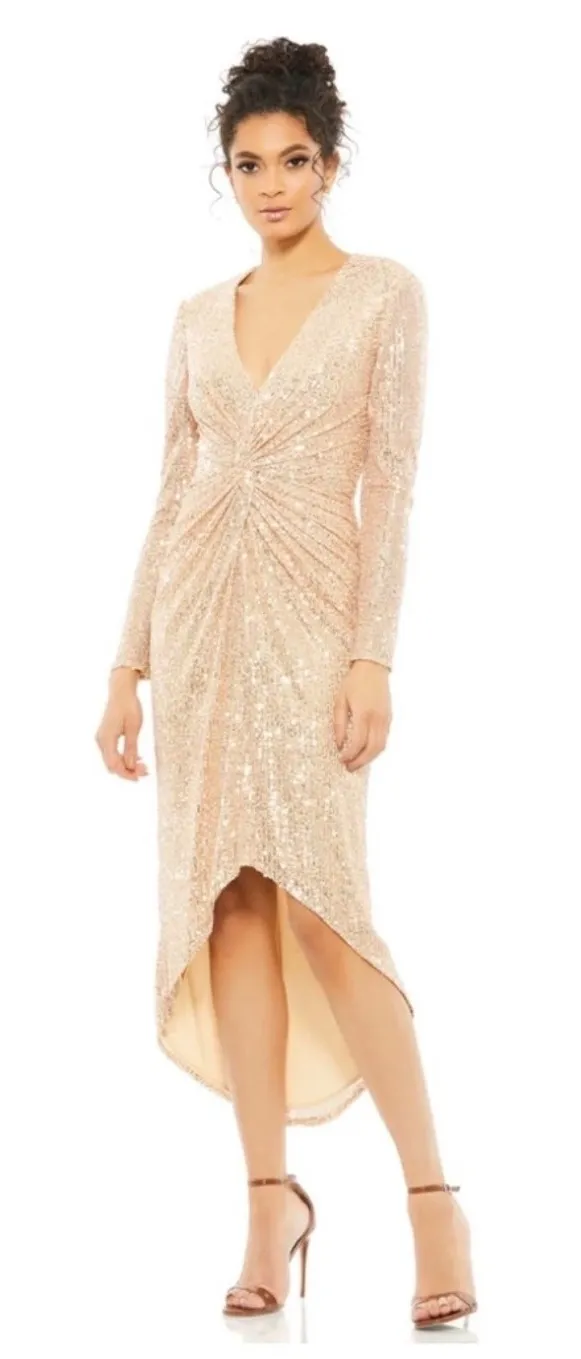 Mac Duggal Sequin Knotted Long Sleeve Midi Dress Rose Gold Sz 10 $358 Long-sleeved, fully-sequined c... Show more