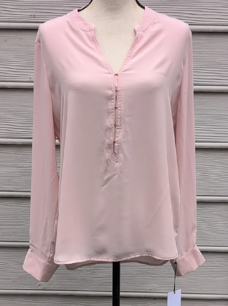 NWT Ivanka Trump size large light pink henley blouse. longsleeve. 5 rose gold clasps down the front.... Show more