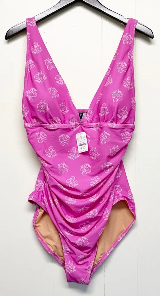 NWT J. CREW Factory V-neck Ruched One-piece Floral Pink Swimsuit Large - $40 New With Tags - From Jamie