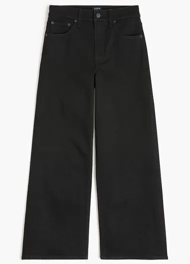 Sits above waist. Slim at the hip, easy at the thigh, with a slim wide-leg. 76% cotton/22% recycled polyester/2% elastane. All-day stretch fabric: low stretch, with an easy feel and a little bit of give. Zip fly with button-tab closure. Traditional 5-pocket styling. Machine wash. Item CB373. New with tags. Keywords: J. Crew Factory, wide-leg jeans, tall size, black denim, all-day stretch, 5-pocket, cropped jeans, women's jeans, casual wear. Brand: J. Crew Factory Size: 33T, 33 Tall Style: Cropped Wide-Leg Color: Black Department: Women Type: Jeans Fit: Regular Fabric type: Denim Country/region of manufacture: Vietnam MW6