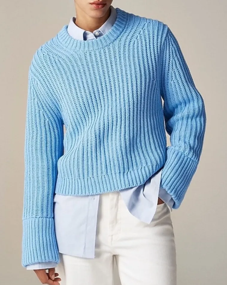 NWT J.CREW Heritage Cotton Fisherman Crewneck Sweater Large Pale Cerulean Blue - $50 New With Tags - From Jamie