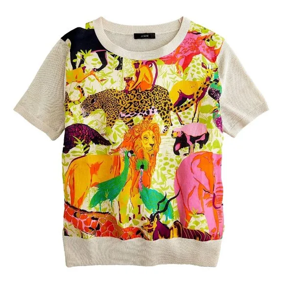 NWT J.Crew Short-sleeve Sweater in Ratti Safari Print Linen Knit Top XS - $79 New With Tags - From A
