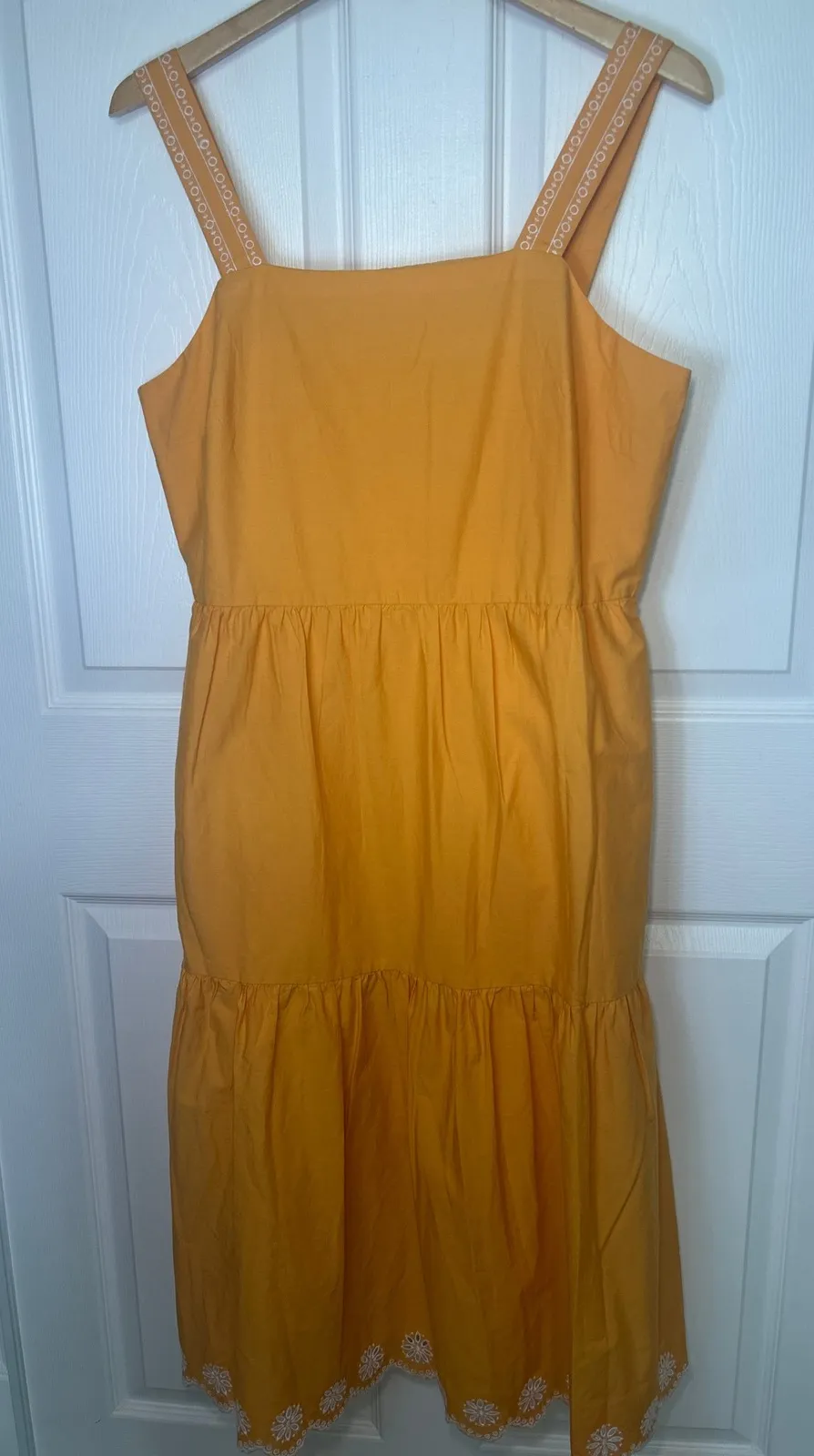J.Crew yellow cotton midi dress with eyelet trim. Size 10 New with tags. No flaws. Approx measuremen... Show more