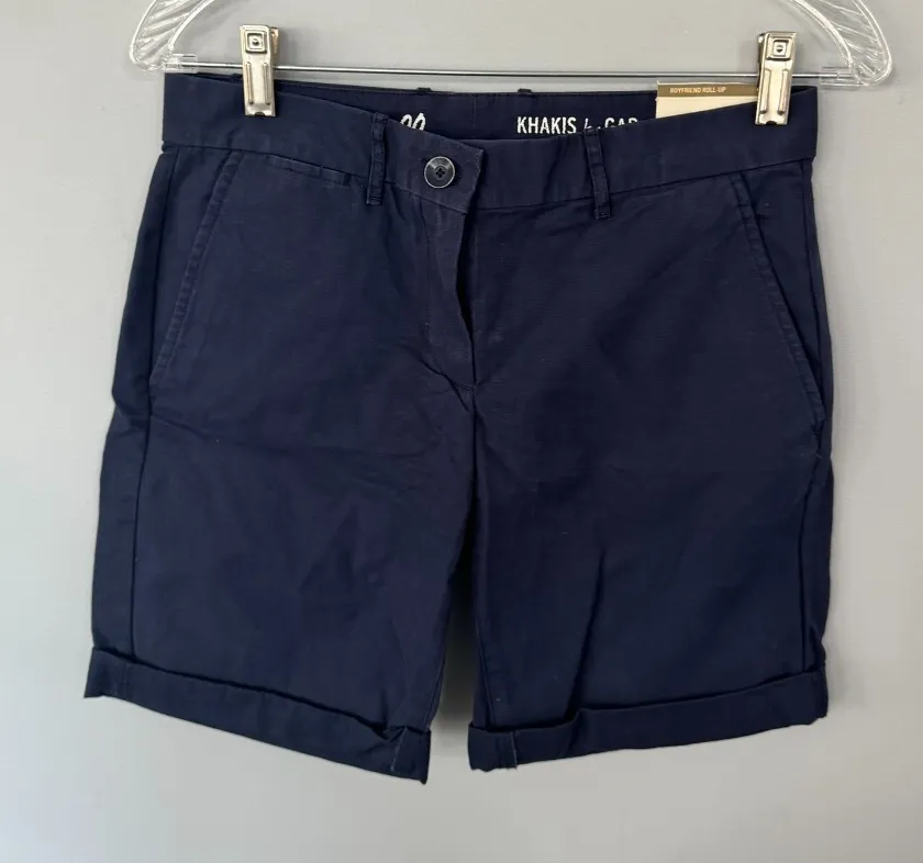NWT Khakis by GAP Boyfriend Roll-Up Shorts, Dark Blue Navy in Women's Size 00. 100% cotton, New with... Show more