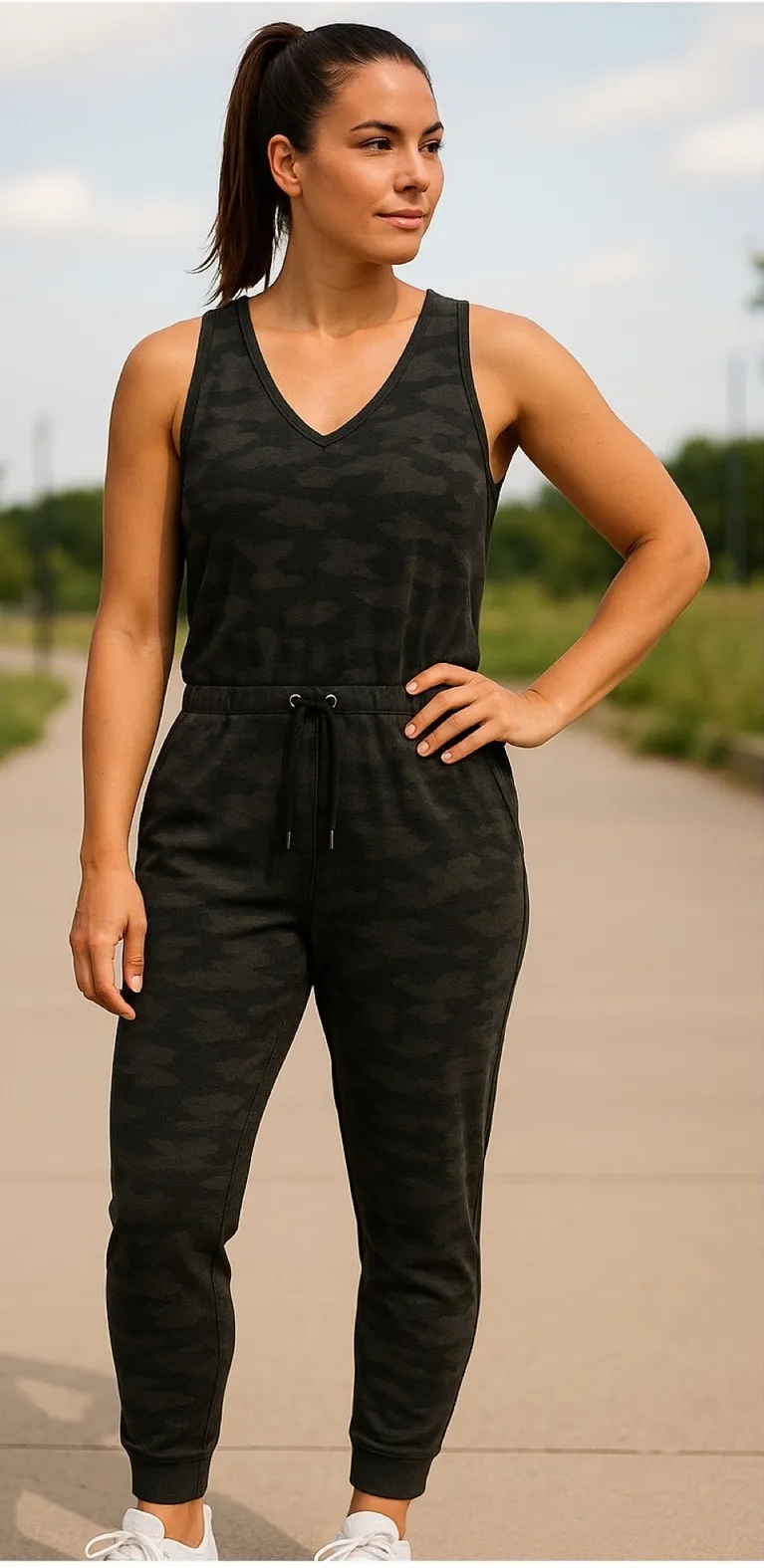 KYODAN Outdoor Camo V Neck Sleeveless Jogger Jumpsuit Romper P/S Department: Women Type: One-Piece... Show more