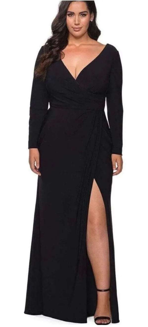 La Femme 29044 Plunging V-neck Jersey Sheath Dress in Black Sz 16W $378 Class and sophistication ar... Show more