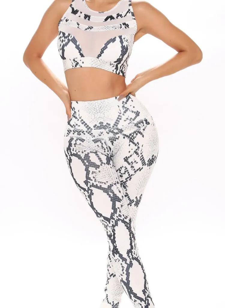 NWT LA SOCIETY YOGA SNAKE PRINT PADDED SET : LEGGINGS AND TOP S White - $29 New With Tags - From Daria