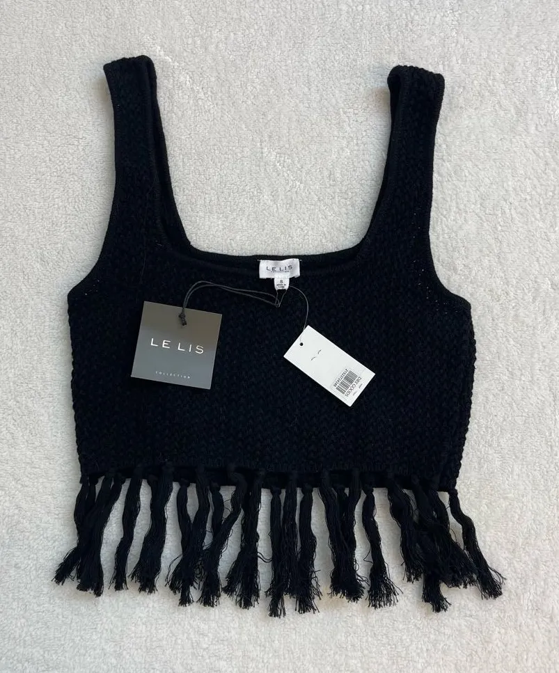 NWT Le Lis Black Fringe Knit Top Crochet Size Small Tank Sleeveless Dry Goods - $26 New With Tags - From Trend