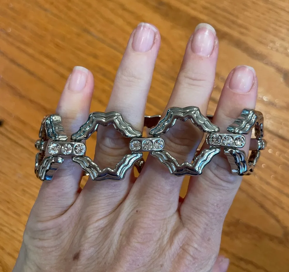 ✨ NEW WITH TAGS ✨ Bold, sculptural Lia Sophia bracelet featuring a Spanish tile–inspired open-link design. Crafted in stainless steel with a polished silver-tone finish and clear crystal rhinestone accents. Details: • Condition: NEW WITH TAGS (NWT) • Brand: Lia Sophia • Material: Stainless steel • Accents: Clear crystal rhinestones • Style: Spanish tile / geometric link chain • Closure: Fold-over clasp 📦 Ships fast from a smoke-free home! 🎁 Bundle & save on shipping! #NWT #NewWithTags #LiaSophia #StatementBracelet #RhinestoneBracelet #SilverToneJewelry #ChunkyBracelet #GeometricJewelry #BoldAccessories