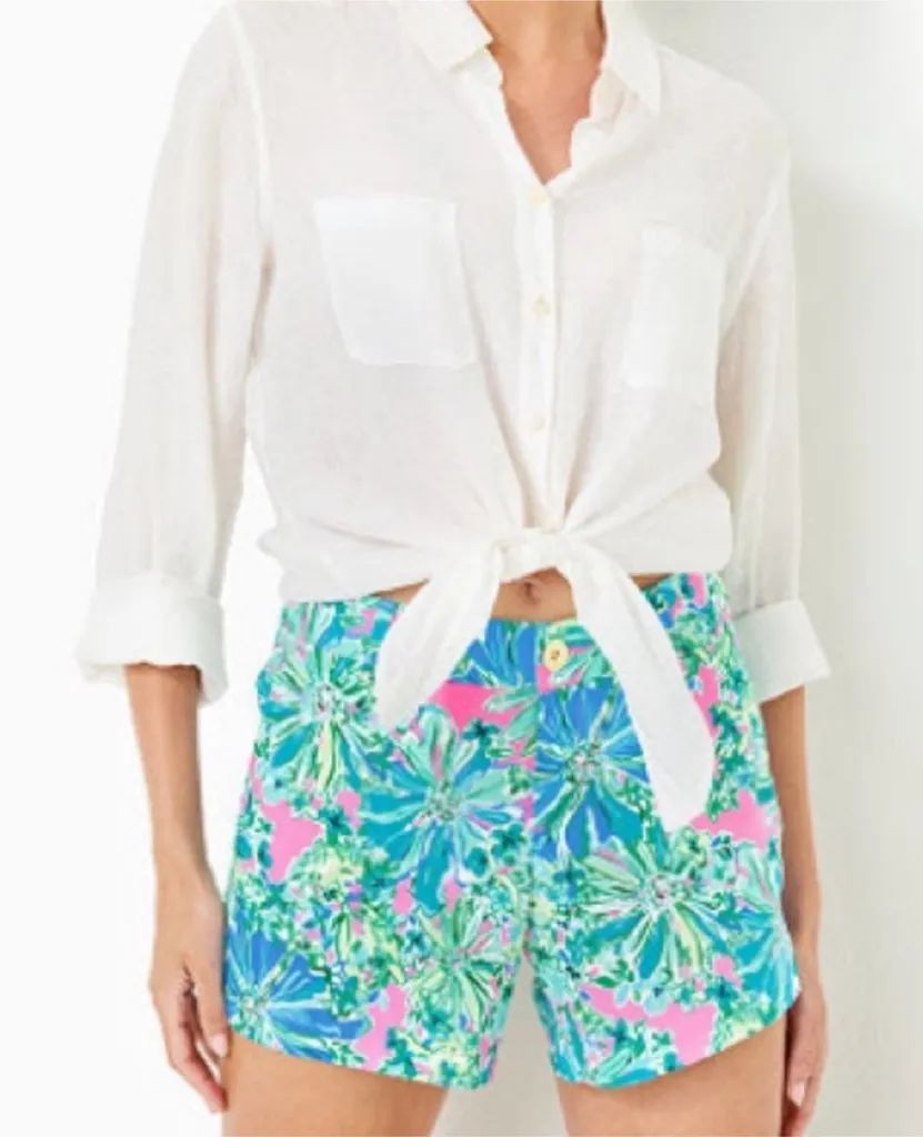 New with tags Lilly Pulitzer 5" Callahan Stretch Short Soleil Pink Good Hare Day Size 16