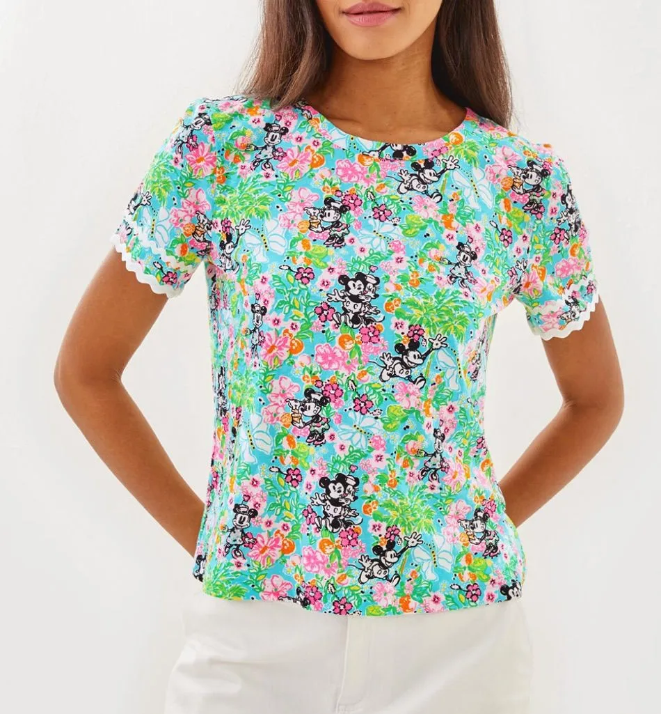 NWT Lilly Pulitzer Lilly Hearts Loves Disney Clairmont Trimmed Knit Lace Top size large