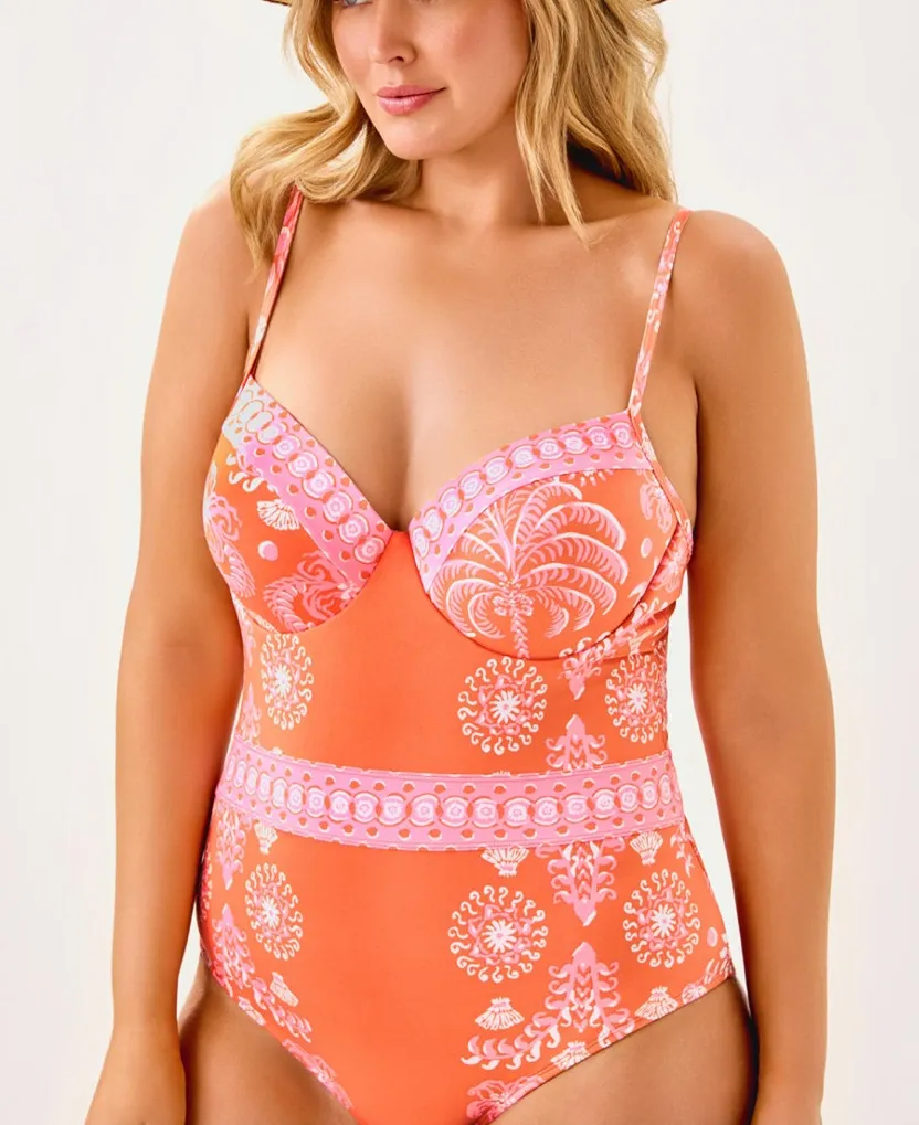 New with tags Lilly Pulitzer Palma one piece swimsuit papaya breezy palm engineered size 16