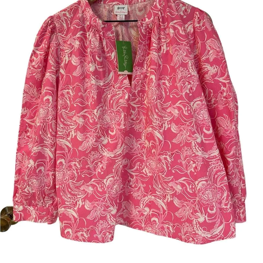NWT Lilly Pulitzer Paltrow Blouse Top Hotty Pink White Kiss Goop XL $168