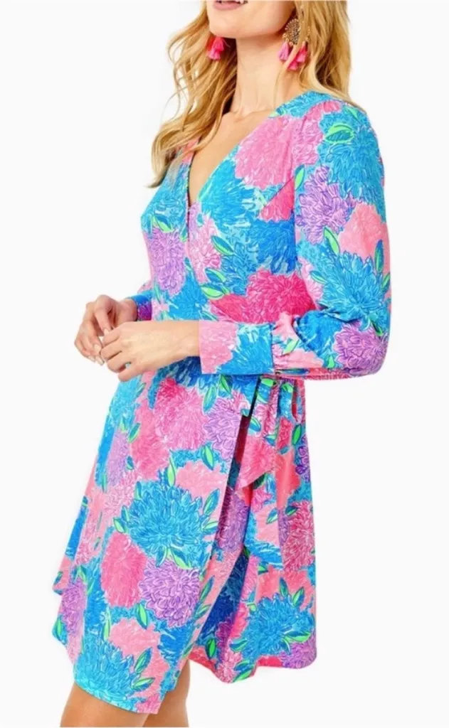 New with tags Lilly Pulitzer Rosalinda Wrap Dress multi beach house blooms Size medium