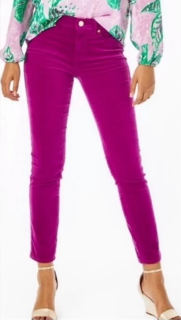 New with Tags! Lilly Pulitzer South Ocean High Rise Plush Skinny Jeans/Pants Berry Bordeaux which i... Show more