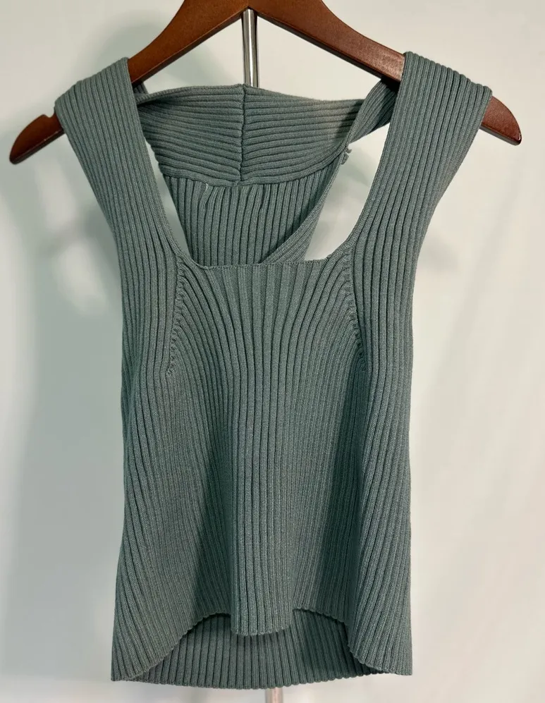 Elevate your style with this chic ribbed knit sleeveless top. Perfect for any occasion, this gray to... Show more