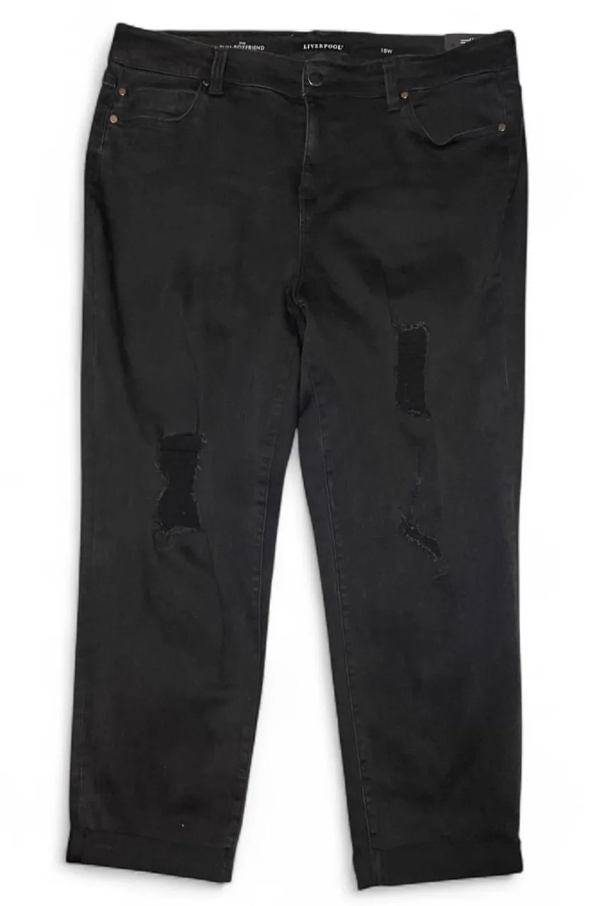NWT! LIVERPOOL Womens Slim Boyfriend Carbon Destruct Black Jeans Size 18W Ankle High-waist Cuffed Ri... Show more
