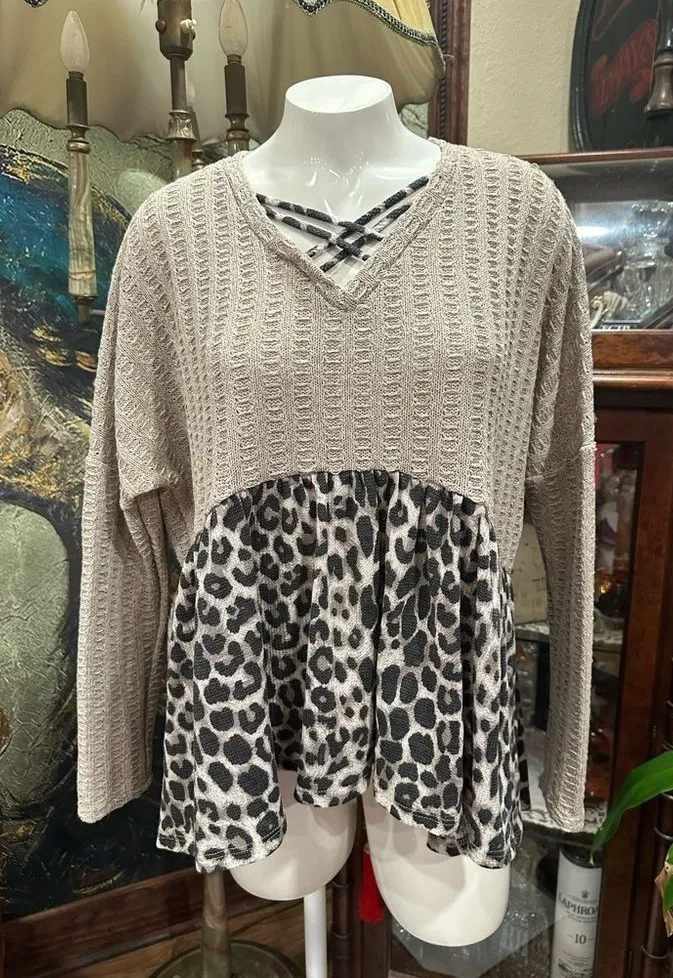 NWT LOVELY 🩷 MELODY BI-color leopard and tan long sleeve sweater Brown Size M - $40 New With Tags - From Francesca