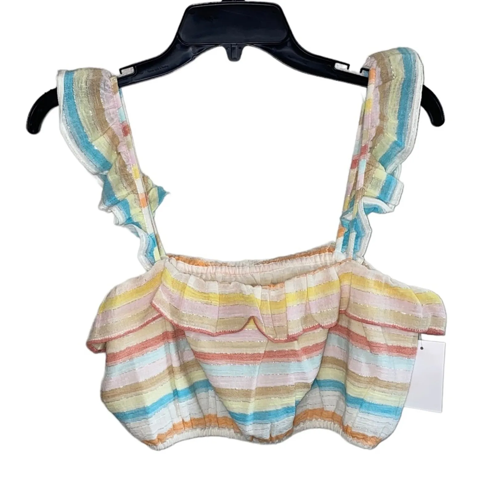 NWT Lovers + Friends Ruffle Strap Striped Crop Top Small NWT Pastel Smocked Festival Top Silver sp... Show more