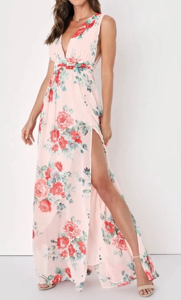 Get lost in all the dreamy details of the Lulus Garden Meandering Blush Floral Print Maxi Dress! Air... Show more