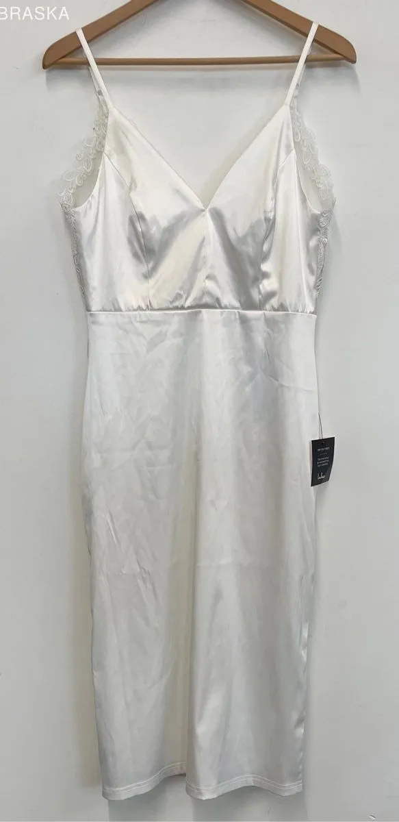 NWT: Lulu's White "Stunning Sight" Satin Midi Dress Lace Back - Size M Brand: Lulu's Type: Formal Dress Condition: New with tags Size: M Color/Pattern: White Your purchases today support our social service programs throughout Southern Nebraska. To learn more visit: csshope.org ALL ITEMS SOLD IN OUR STORE HAVE BEEN DONATED AND SHOULD BE CONSIDERED SECOND-HAND UNLESS OTHERWISE NOTED