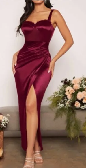 Brand new with tags! Straps Sheath Backless Contrast Lace Ruched Wrap Front Back Zipper Closure Sleeveless Maxi Maroon / Burgundy / Wine / Red Regular Fit Stretch Satin 93% Polyester, 7% Elastane Machine wash or professional dry clean Size: Large Tags 🏷️: contemporary minimalist business formal dress gown prom ball dress professional workplace wear fall winter blazer blouse holiday party tiktok classic classy trendy business casual contemporary minimalist Resort summer wedding guest festival date night cruise vintage flirty hippie bohemian chic trendy maxi coverup vacation coachella dress vintage skirt floral maxi midi ethereal winter fall birthday gift resort girly trendy date night minimalist 2k 00s guest engagement party bachelorette cruise travel aesthetic vibe retro holiday chic casual dressy valentines Light vintage baddie aesthetic color-block pearlcore prairie boho granny core festival soft girl 90s y2k butterfly dopamine dressing maximalist regency core weirdcore cottagecore lagenlook aesthetic instabaddie gorpcore fall pool winter spring 90s dress pants blazer blouse holiday party Christmas dress thanksgiving date night wedding guest boho bridesmaid date night Sexy modest contemporary layer classic trendy layered office preppy prom classy work office business casual contemporary minimalist business formal dress gown prom ball dress professional workplace wear fall winter blouse holiday party tiktok classic classy trendy business casual contemporary minimalist