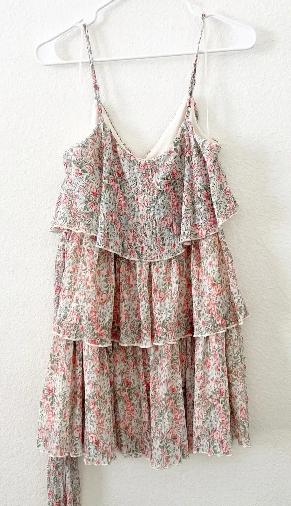 NWT Mable Ruffle Mini Dress Floral Size Small Belt Pleated Tier Pink - $31 New With Tags - From Aracely