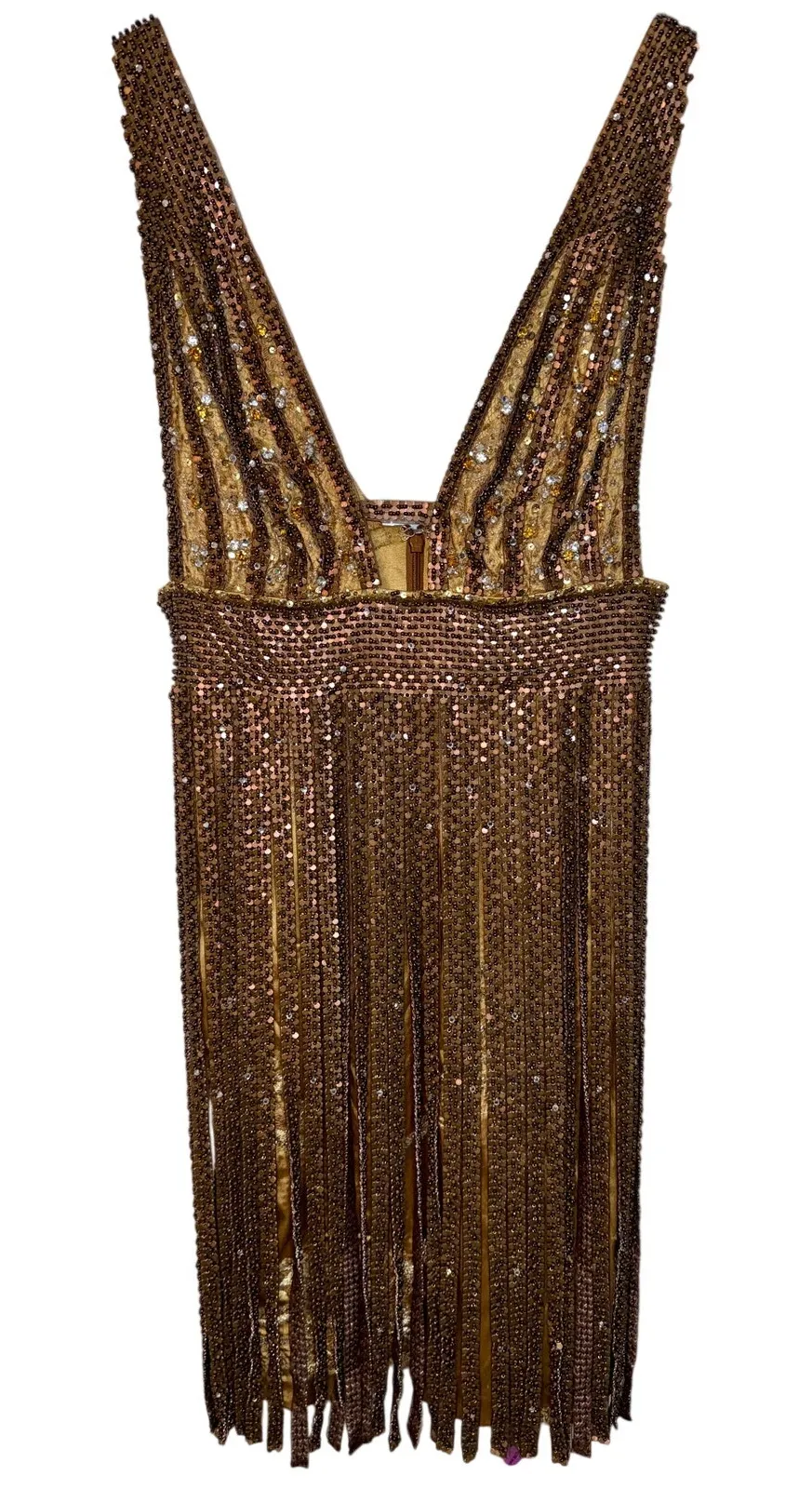 NWT Mandalay Light Gold Beaded Fringe Sequin Sleeveless V-Neck Mini Evening Dress Womens Size 10 CO... Show more