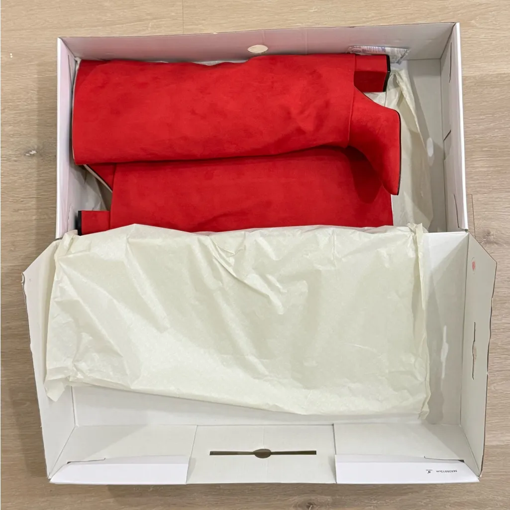 NWT in original box. true to size. I always size between 8.5-9 Stylish red over-the-knee boots. Per... Show more