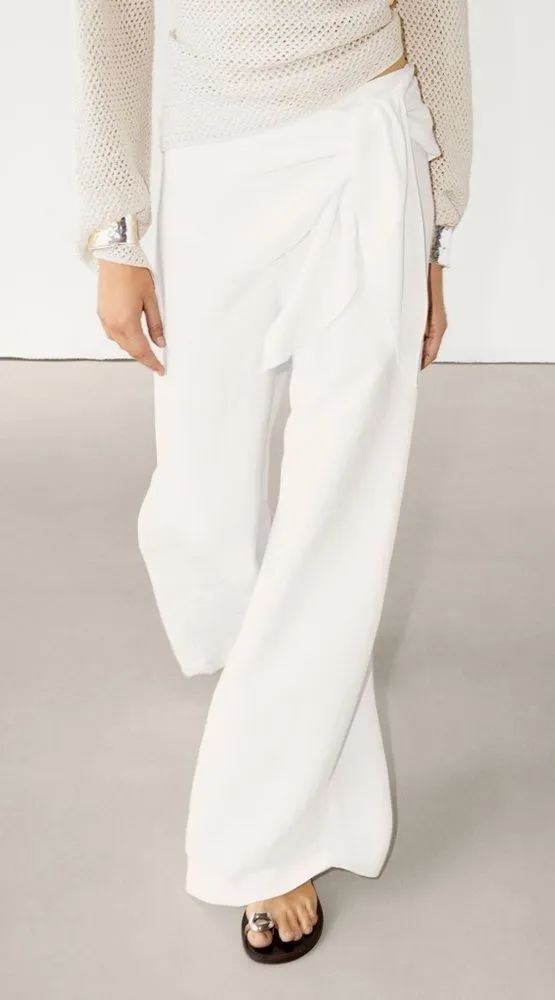 Wide-leg. Side tie detail. Made of a linen blend. Loose cut. In very good condition. New with tags... Show more