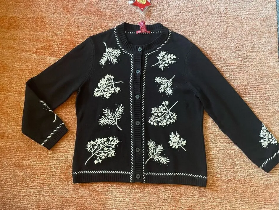 NWT Merry & Bright Womens Christmas Holiday Cardigan Sweater Size M Embroidered Black Size M - $22 New With Tags - From Yana